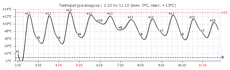 день +10°C, небольшой дождь, пасмурно, ветер Южный,2 м/с, влажность 77%
