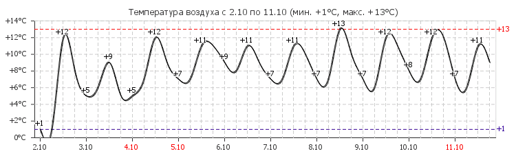 день +11°C, без осадков, пасмурно, ветер Западный,2 м/с, влажность 82%