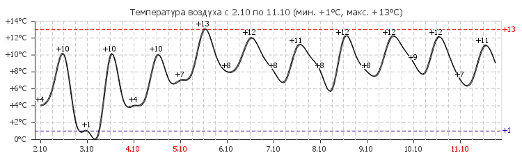 день +10°C, без осадков, малооблачно, ветер Восточный,1 м/с, влажность 69%