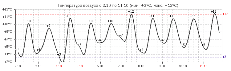 день +10°C, без осадков, малооблачно, ветер Западный,1 м/с, влажность 75%