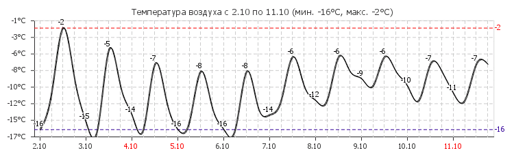 Прогноз от 02-10-2025 00:00 Батагай прогноз гисметео на неделю. Погода в поселке Батагай респ Якутия на 7 дней | |||