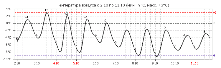ночь -9°C, без осадков, малооблачно, ветер Северо-Западный,2 м/с, влажность 73%