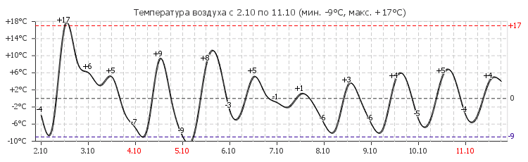 ночь -9°C, без осадков, ясно, ветер Юго-Восточный,6 м/с, влажность 88%