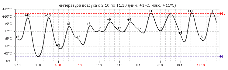 Прогноз от 02-10-2025 00:00 Прогноз гисметео Калевала. Погода в поселке Калевала на октябрь 2025 | |||