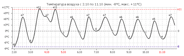 день +11°C, без осадков, ясно, ветер Западный,1 м/с, влажность 50%