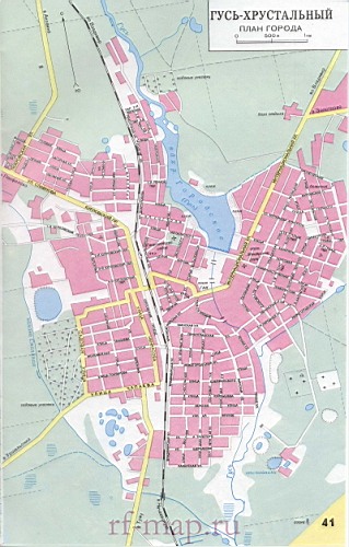 Гусь-Хрустальный карта крупномасштабная 1см:250м. План города Гусь-Хрустальный с названиями улиц и схемой проезда | ||||