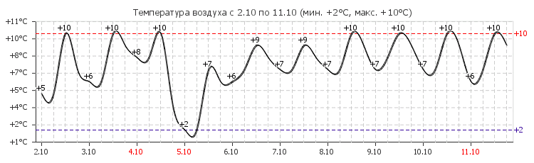 Прогноз от 02-10-2025 00:00 Заозерск погода на октябрь месяц 2025 | |||