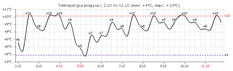 день +10°C, без осадков, малооблачно, ветер Юго-Западный,4 м/с, влажность 65%