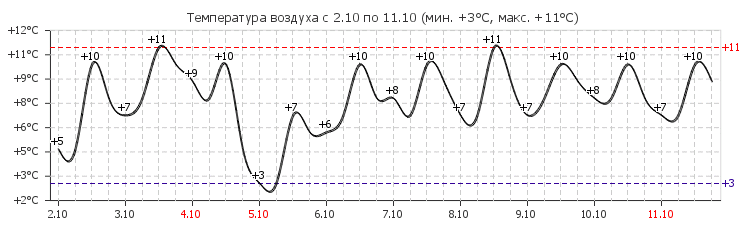 Прогноз от 02-10-2025 00:00 Печенга погода на неделю. Прогноз погоды в поселке Печенга Мурманской обл | |||