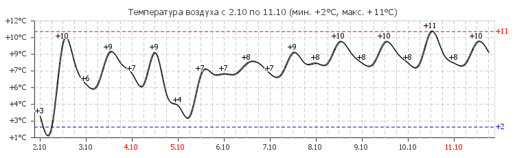 день +10°C, без осадков, малооблачно, ветер Юго-Западный,2 м/с, влажность 66%