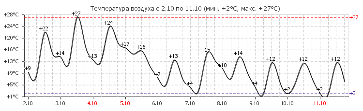 день +27°C, без осадков, ясно, ветер Юго-Западный,1 м/с, влажность 46%