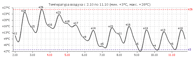 день +26°C, без осадков, ясно, ветер Южный,2 м/с, влажность 51%