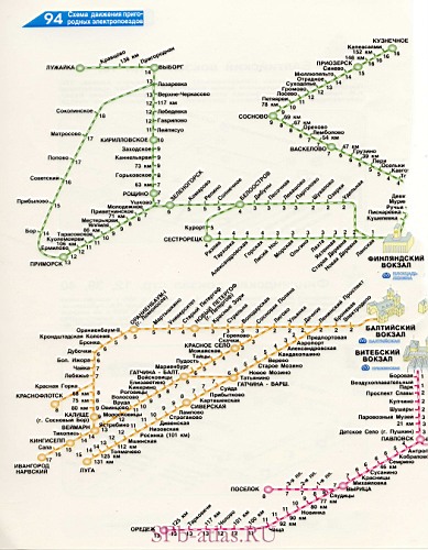 Карта схема пригородных электропоездов Санкт-Петербурга. Новая подробная карта схема пригородных электропоездов Санкт-Петербурга | |||