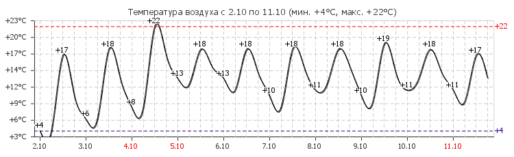 Прогноз от 02-10-2025 00:00 Прогноз гисметео для Тацинской. Прогноз погоды для станицы Тацинская Ростовской области на 10 дней | |||