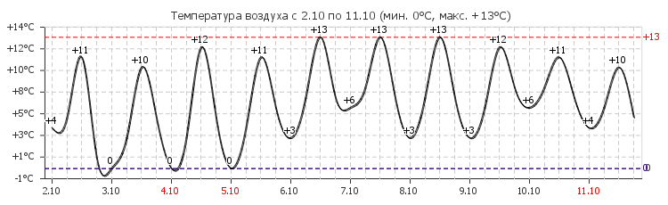 день +13°C, небольшой дождь, облачно, ветер Южный,0 м/с, влажность 50%